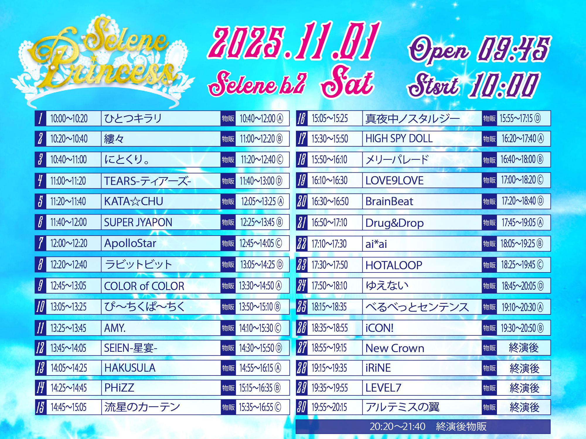 ai*ai / iCON! / iRiNE / ApolloStar / AMY. / KATA☆CHU / COLOR of COLOR / SUPER JYAPON / SEIEN-星宴- / TEARS-ティアーズ- / Drug&Drop / にとくり。 / New Crown / HAKUSULA / ひとつキラリ / PHiZZ / BrainBeat / べるべっとセンテンス / HOTALOOP / 真夜中ノスタルジー / メリーパレード / ゆえない / ラビットビット / LOVE9LOVE / 縷々 / LEVEL7 / アルテミスの翼