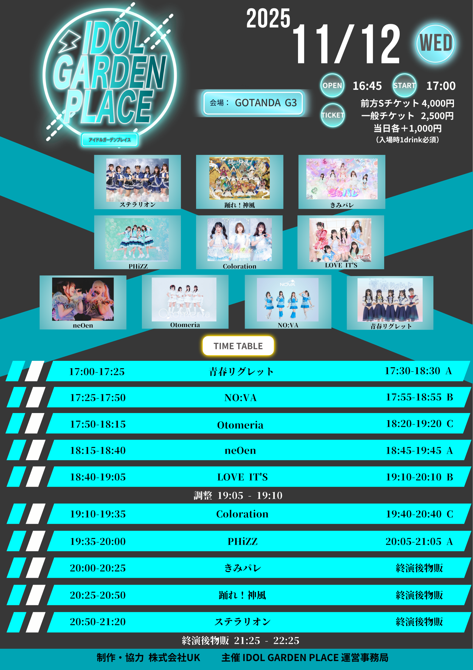 Otomeria / NO:VA / neOen / ステラリオン / LOVE IT’S / 踊れ!神風 / 青春リグレット / きみパレ / PHiZZ / Coloration
