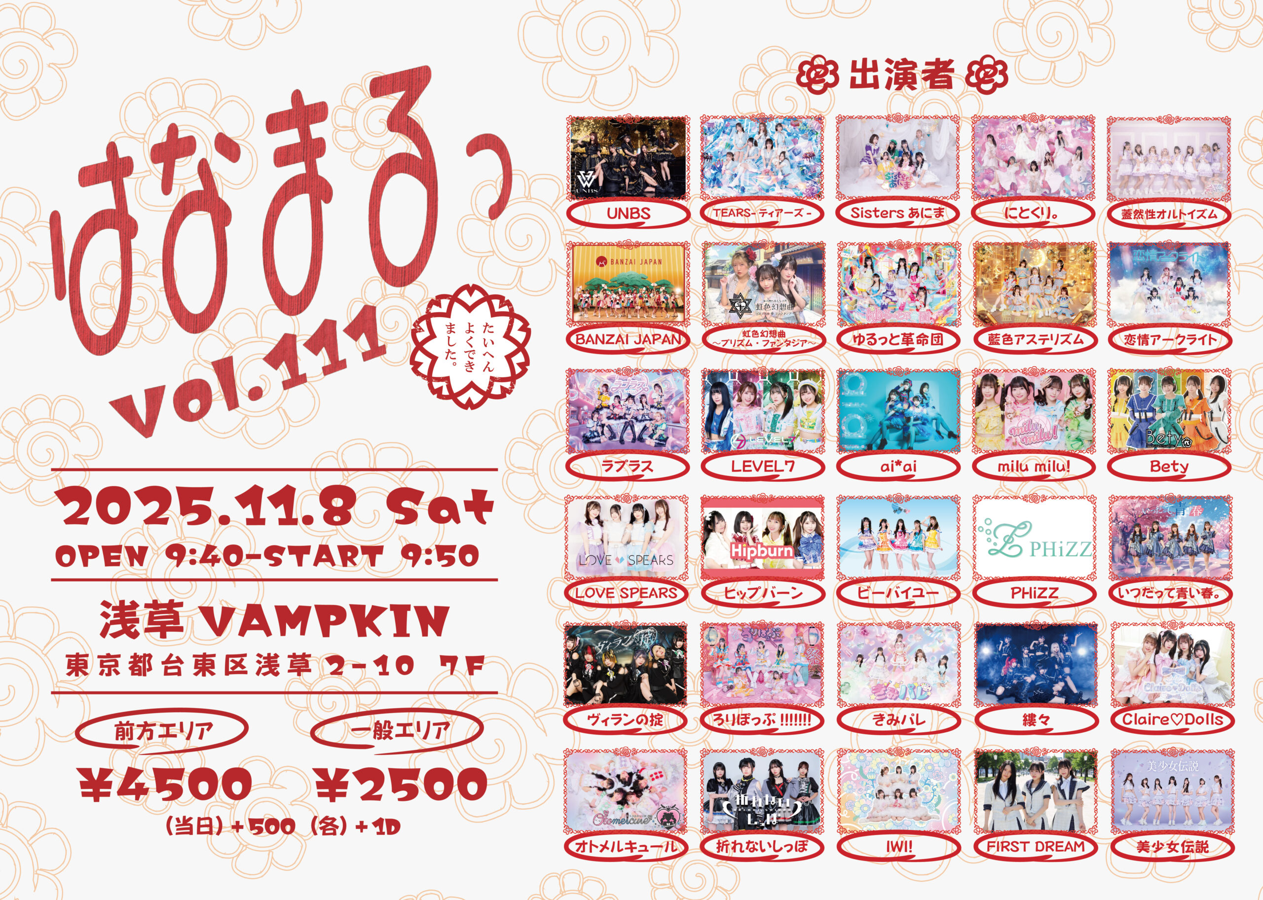 前方 4,500円 / 一般 2,500円 / 当日+500円(+1D)