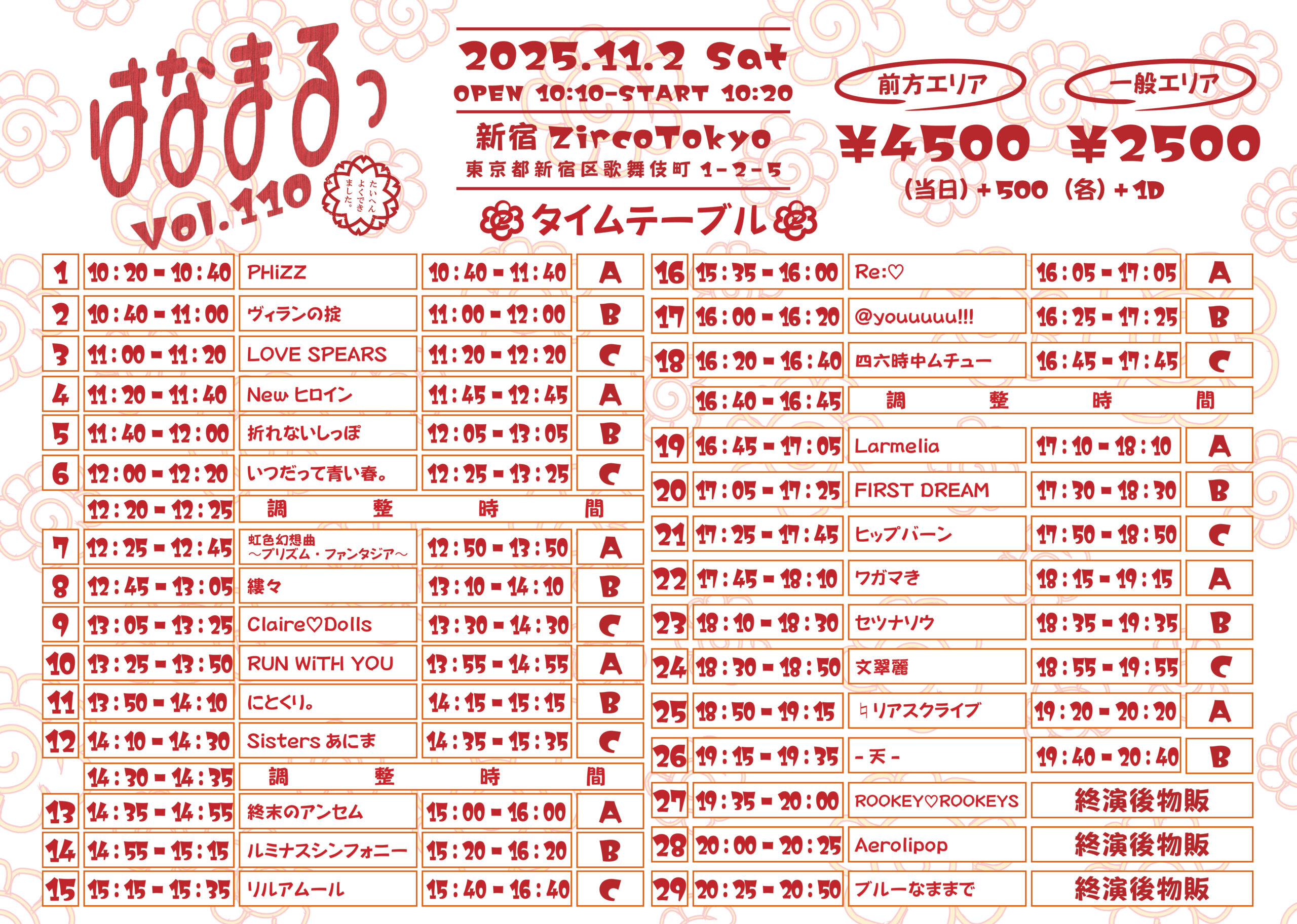 虹色幻想曲〜プリズム・ファンタジア〜 / ブルーなままで / ♮リアスクライブ / ワガマき / RUN WiTH YOU / LOVE SPEARS / ヒップバーン / いつだって青い春。 / ヴィランの掟 / にとくり。 / Sistersあにま / 縷々 / Claire♡Dolls / PHiZZ / Re:♡ / Aerolipop / 終末のアンセム / ROOKEY♡ROOKEYS / 折れないしっぽ / Newヒロイン / FIRST DREAM / Larmelia / セツナソウ / @youuuuu!!! / -天-/リルアムール / 文翠麗 / 四六時中ムチュー / ルミナスシンフォニー