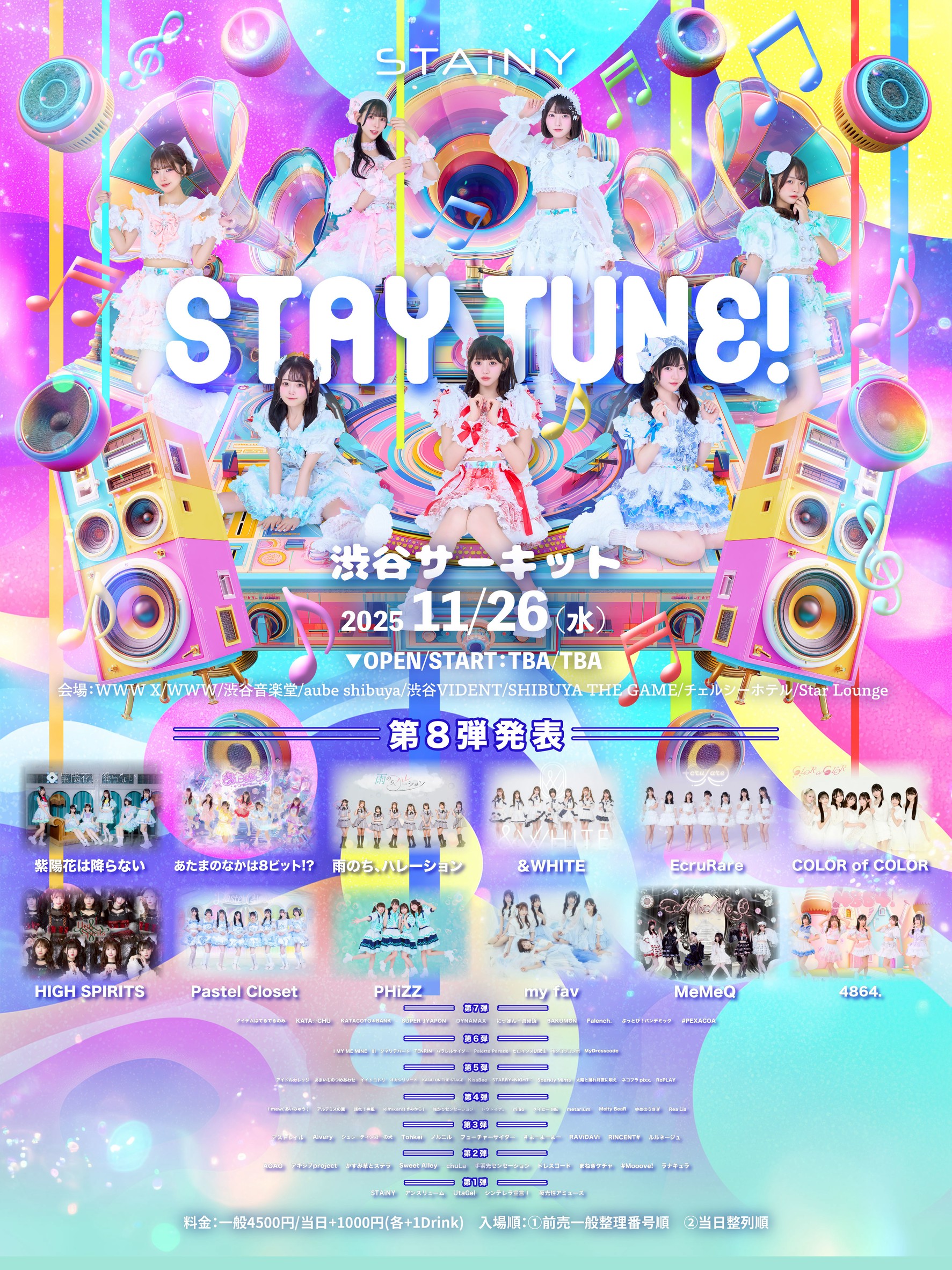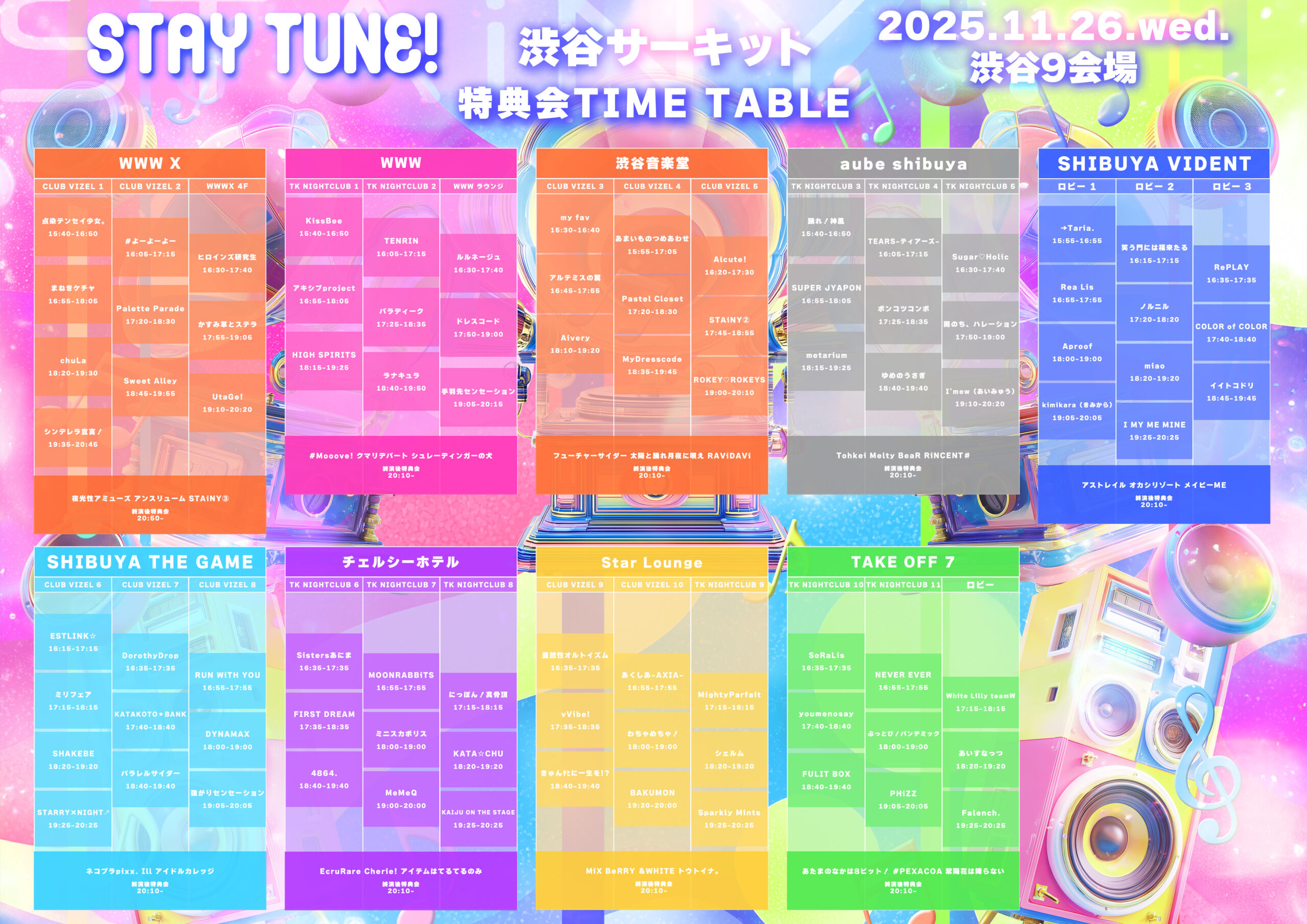 ネコプラpixx. / 太陽と踊れ月夜に唄え / KissBee / オカシリゾート / アイドルカレッジ / RePLAY / KAIJU ON THE STAGE / あまいものつめあわせ / イイトコドリ / Sparkly Mints / STARRY×NIGHT↗