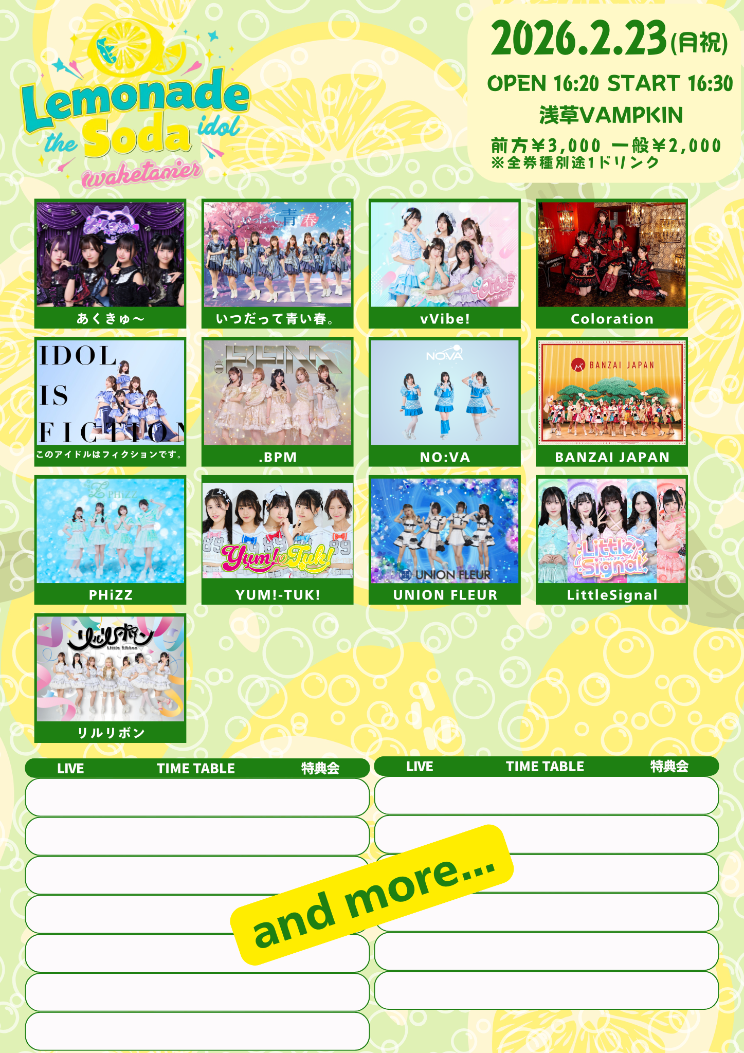 あくきゅ〜 / いつだって青い春。 / vVibe! / Coloration / このアイドルはフィクションです。 / .BPM / NO:VA / BANZAI JAPAN / PHiZZ / YUM!-TUK! / UNION FLEUR / LittleSignal / リルリボン