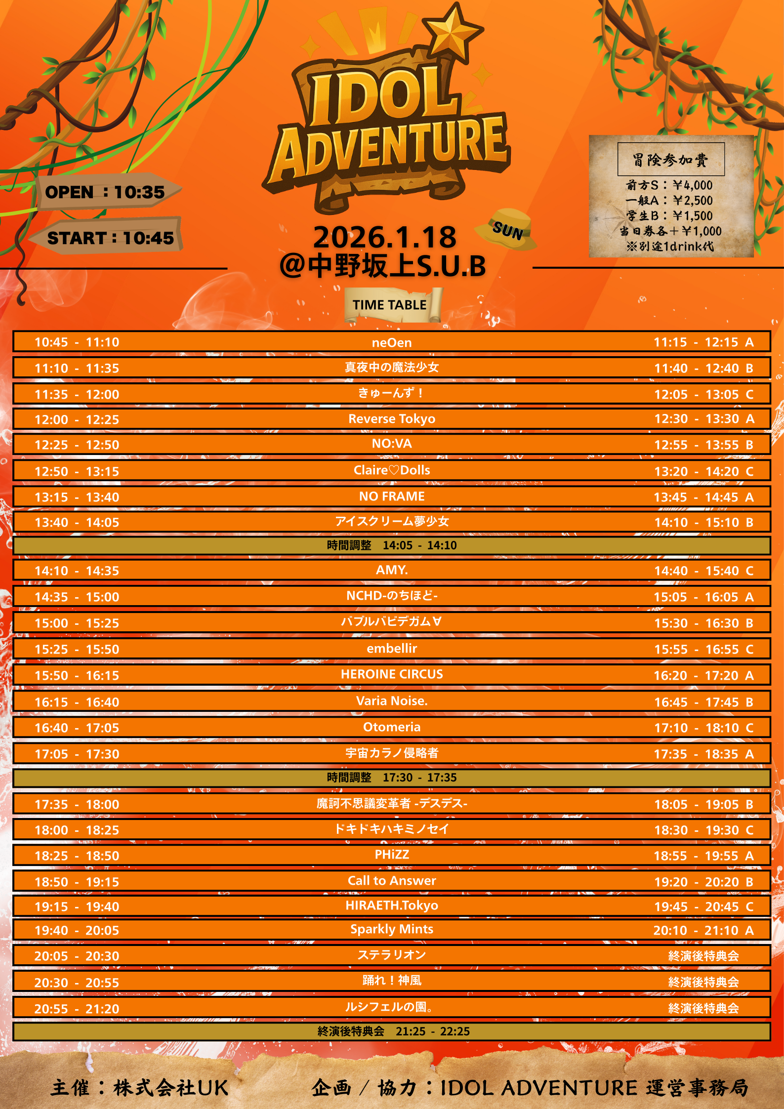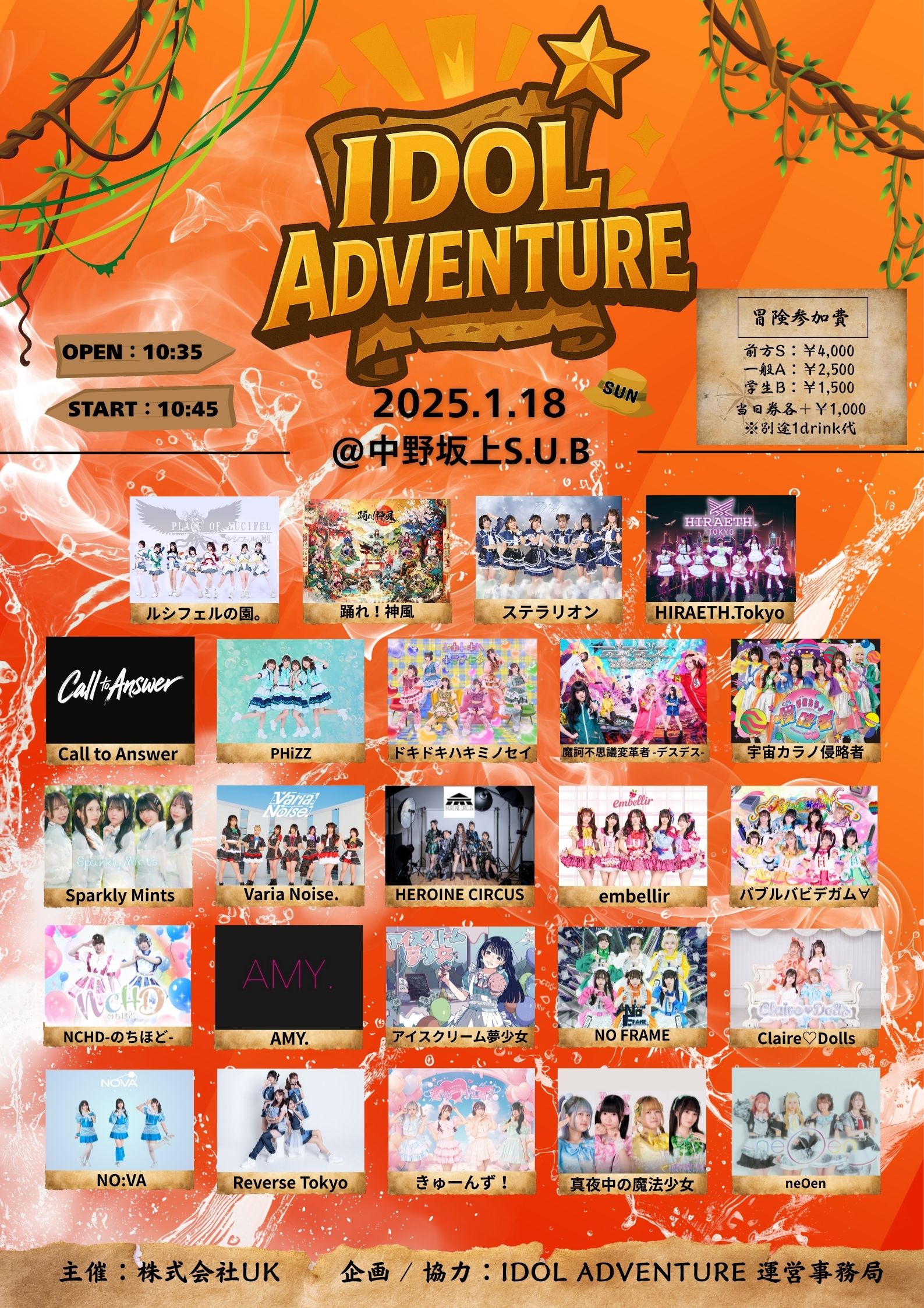 きゅーんず! / Claire♡Dolls / ドキドキハキミノセイ / 踊れ!神風 / HEROINE CIRCUS / 真夜中の魔法少女 / NO:VA / ステラリオン / neOen / HIRAETH.Tokyo / ルシフェルの園。 / バブルバビデガム∀ / アイスクリーム夢少女 / 魔訶不思議変革者 -デスデス- / AMY. / NO FRAME / Sparkly Mints / Varia Noise. / Call to Answer / NCHD-のちほど- / Reverse Tokyo / embellir / 宇宙カラノ侵略者 / PHiZZ