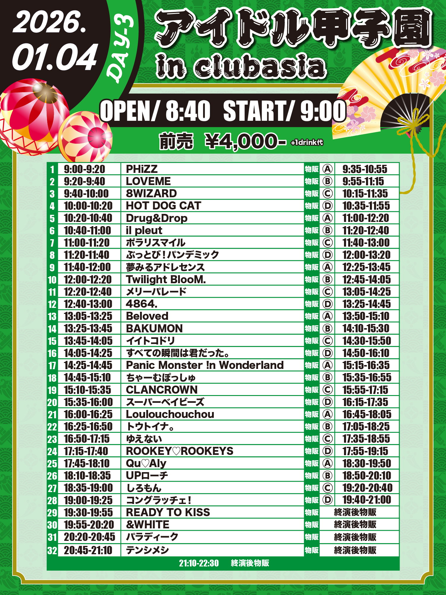 UPローチ / &WHITE / イイトコドリ / il pleut / 8WIZARD / Qu♡Aly / コングラッチェ! /しろもん / スーパーベイビーズ / すべての瞬間は君だった。/ ちゃーむぽっしゅ / トウトイナ。 / Drug&Drop / Twilight BlooM. / BAKUMON / Panic Monster !n Wonderland / Beloved / PHiZZ / ぶっとび!パンデミック / HOT DOG CAT / ポラリスマイル / メリーパレード / ゆえない / 夢みるアドレセンス / 4864. / LOVEME / ROOKEY♡ROOKEYS / Loulouchouchou / READY TO KISS