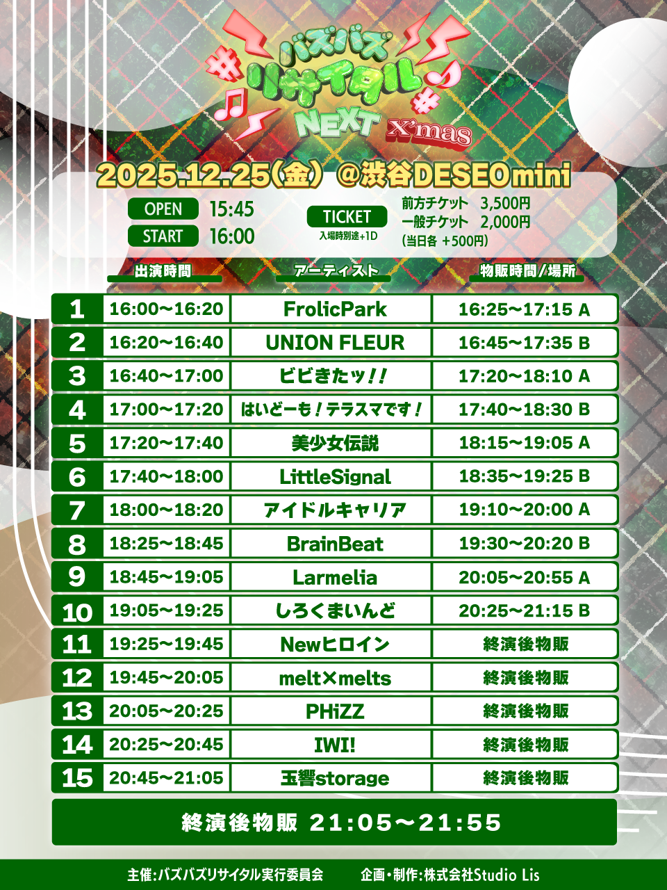 前方 3,500円 / 一般 2,000円 / 当日+500円(+1D)