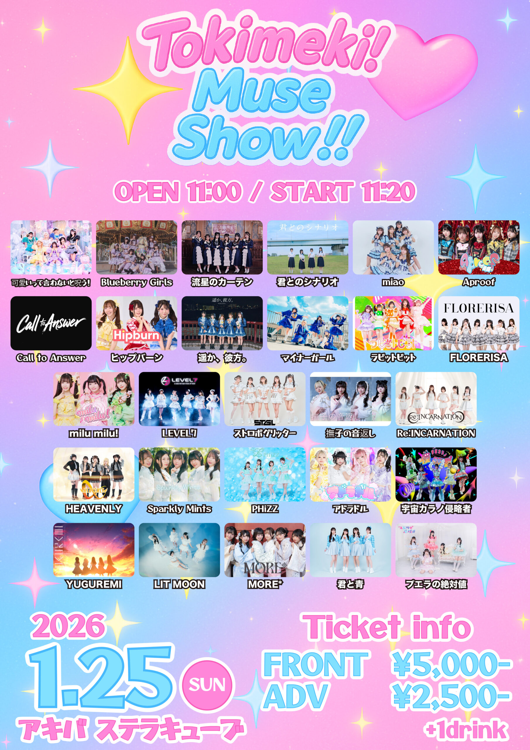 可愛いって言わないと呪う! / Blueberry Girls / 流星のカーテン / 君とのシナリオ / miao / Aproof / Call to Answer / ヒップバーン / 遥か、彼方。 / マイナーガール / ラビットビット / FloreRisa -フロレリーサ- / milu milu! / LEVEL7 / ストロボグリッター / 玉響storage / 撫子の音返し / Re:INCARNATION / HEAVENLY / Sparkly Mints / PHiZZ / アドラドル / 宇宙カラノ侵略者 / YUGUREMI