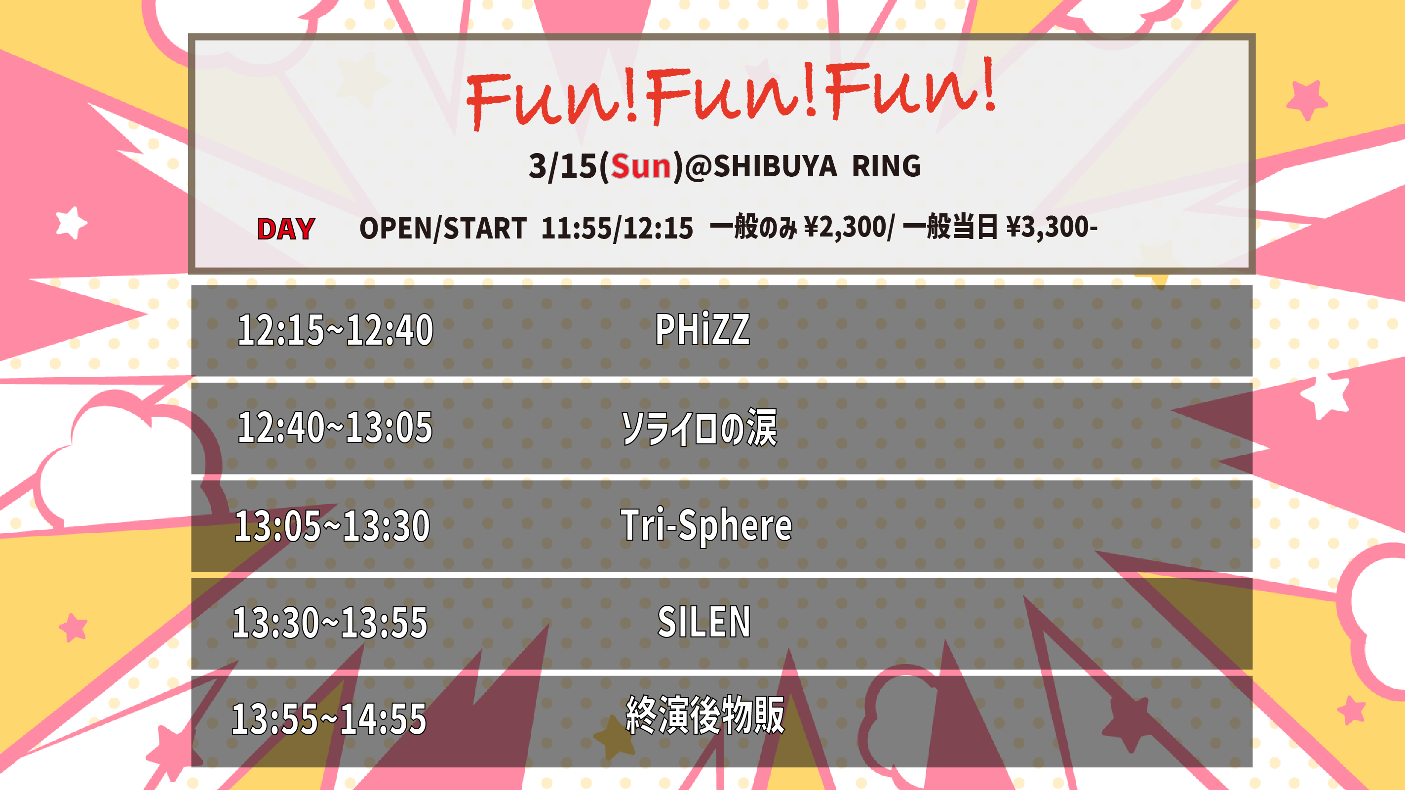 =============== 指名入場特典:2shotチェキ券2枚 出番12:15 / 終演後特典会
