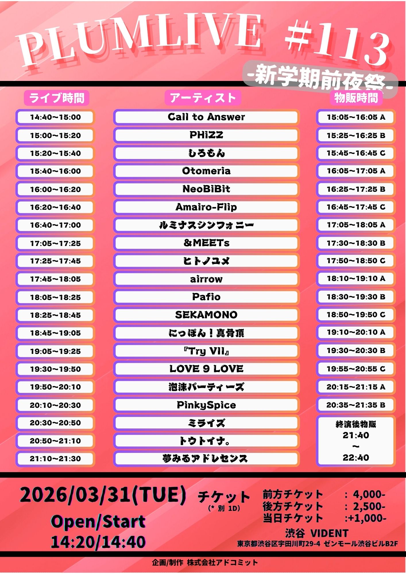 泡沫パーティーズ / LOVE 9 LOVE / トウトイナ。 / &MEETs / ヒトノユメ / NeoBiBit / 夢みるアドレセンス / SEKAMONO / 『Try VII』 / PinkySpice / ルミナスシンフォニー / Pafio / にっぽん!真骨頂 / ミライズ / Otomeria / しろもん / Amairo-Flip / PHiZZ / Call to Answer