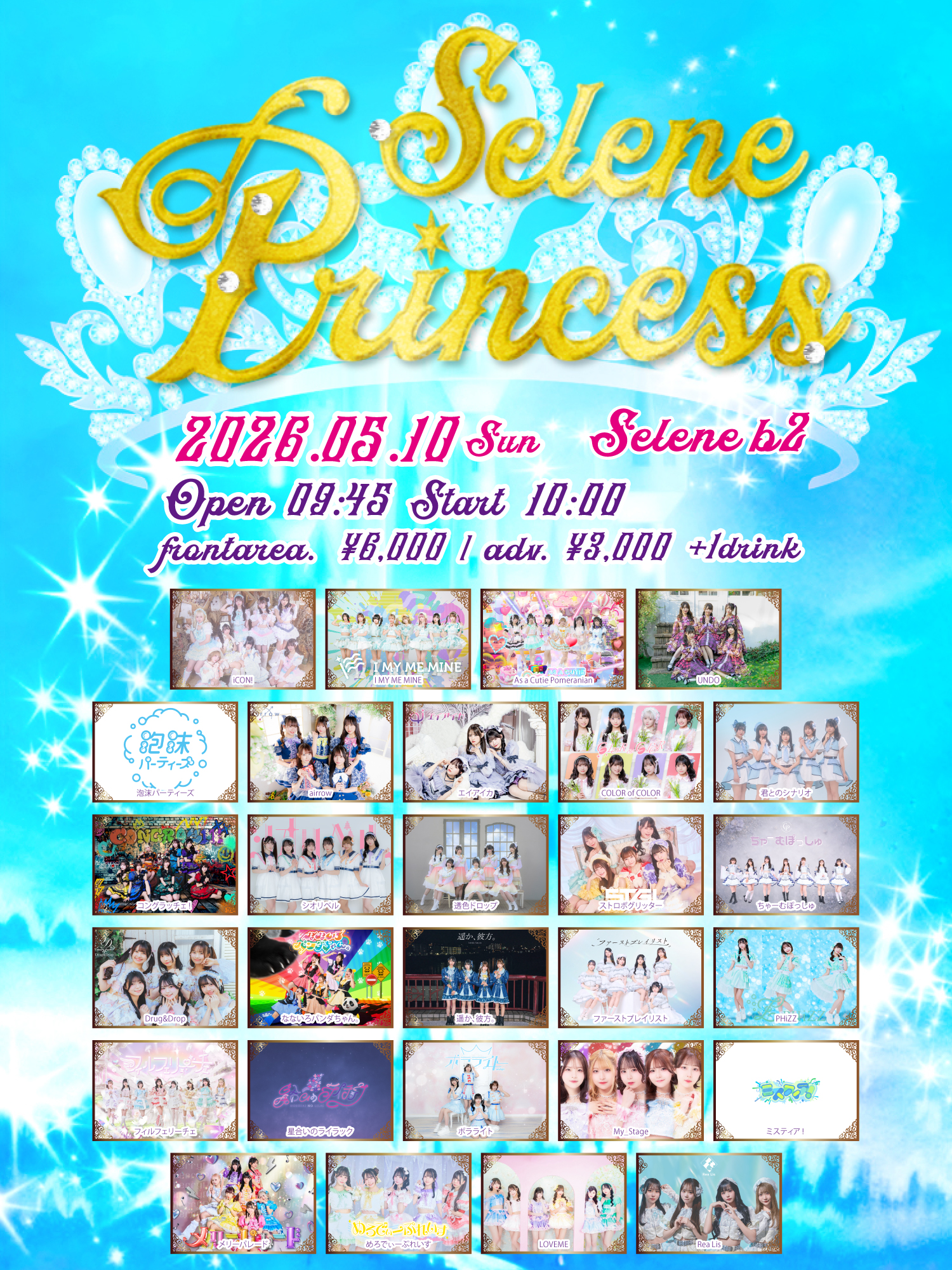 アップアップガールズ(仮) / UP UP NEW AGE ネオアゲ / 愛乙女★DOLL / Blüme / LOVE PANIC! / BLUE REGRET。 / COLOR of COLOR / Ep!codE / 花いろは / ワンダーウィード 天 / シークレットシャノワール / One Last Bloom / スポポポポニー / Lily wonder / Lilite tune / PLATINUM Princess研究生 / mementoa / きゅんぱに! / すてねこキャッツ / トウトイナ。 / ブルーなままで / 泡沫パーティーズ回し / NiLUNLOCK / スーパーベイビーズ / SHURi / SHAKE NA BABYS / SecretPinky / →Taria.
