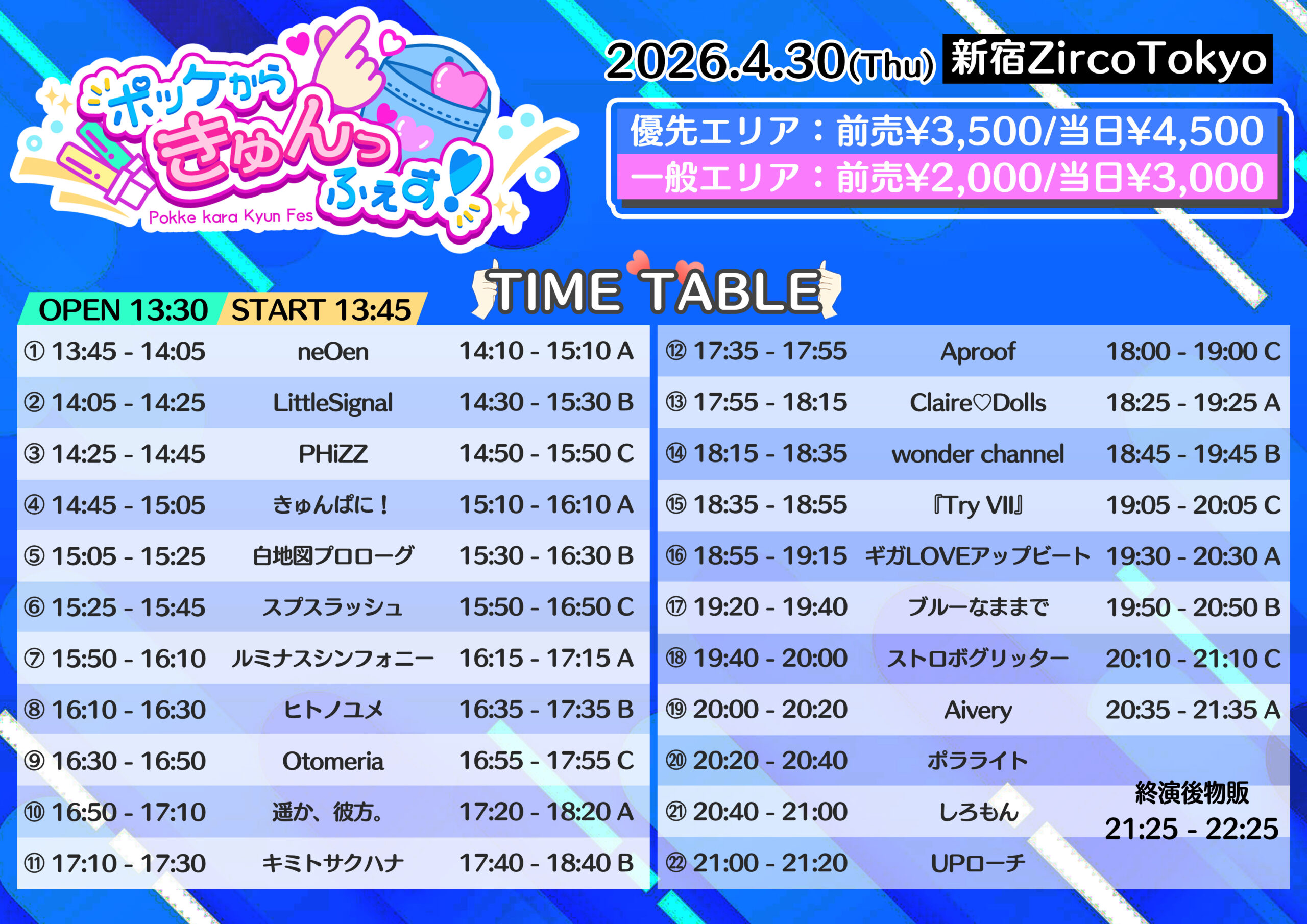 フィルフェリーチェ/ストロボグリッター/アイドルキャリア/newヒロイン/Claire♡Dolls/はくchu♡む/PrismPotion/みらくる⋆☽ふぉーぜ-ZERO-/meltiL/BAKUMON/8ANGEL/Palpitink/白地図プロローグ/キュンタヒに一生を!?/再生のルクトゥミー/PHiZZ/UNION FLEUR/SEKAMONO/ぺりきゅらむ/折れないしっぽ/ひとつキラリ/ルートプリュフォール/メモワールパルファム/縷々/HEARLATE/Ep!codE/Pafio/ゆにきゅーと/幻想リフレクション/miao/わんだふるぱれーど!/君と青