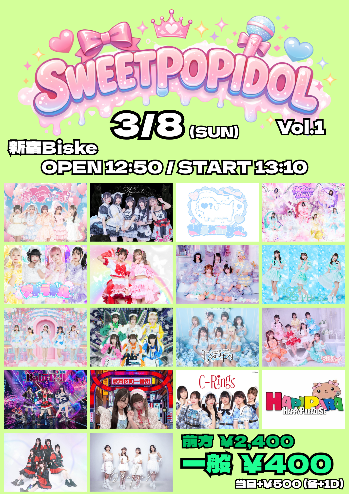 前方 2,400円 / 一般 400円 / 当日+500円(+1D)