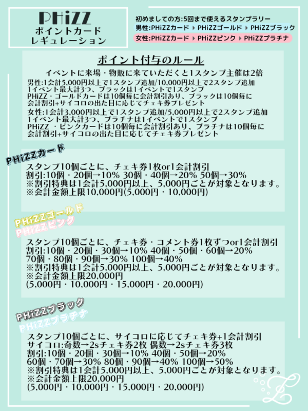 PHiZZの物販では2回目以降の方にスタンプカードを配布
