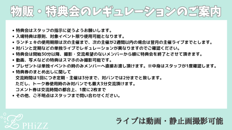 PHiZZ「物販レギュレーション」主催・定期・単独ver